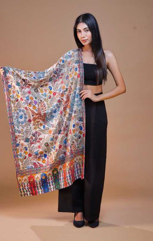 Be the first to review “Pashmkala Women Red And Black Embroidered Flower and Roses on Border Wool Phulkari Stole”